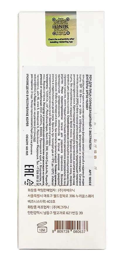 Крем для лица Iunik солнцезащитный с экстрактом центеллы SPF 50, 60мл