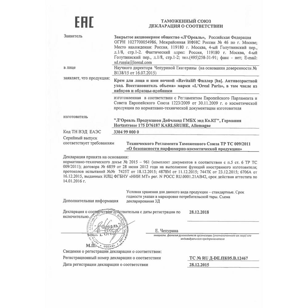 Крем для лица L'Oreal Paris Ревиталифт Филлер антивозрастной против морщин ночной, 50мл