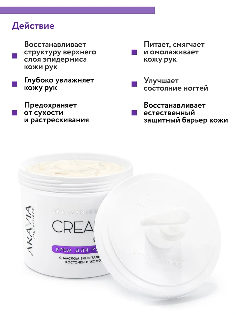 Крем для рук Aravia Cream Oil, 550мл, с маслом виноградной косточки и жожоба