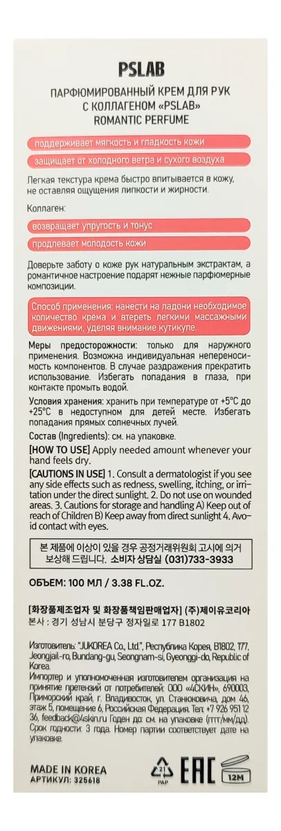Крем для рук PSLab Romantic парфюмированный с коллагеном, 100мл