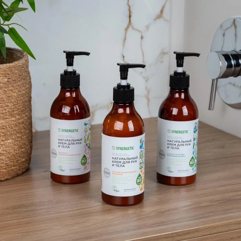 Крем для рук Synergetic Сандал и ягоды можжевельника, 380мл, натуральный, дозатор