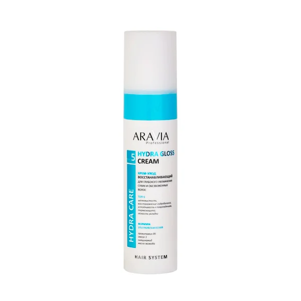 Крем для волос Aravia Professional Hydra Gloss Cream, уход восстанавливающий для глубокого увлажнения сухих и обезвоженных волос, 250мл