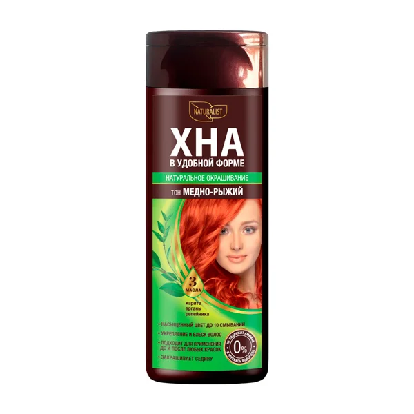 Хна в крем-форме – полностью готовая к применению растительная краска для волос на основе натуральной хны с ухаживающим действием для полустойкого окрашивания. Для ее использования не требуется никаких дополнительных усилий – достаточно нанести уже готовый состав на волосы всего на 10-30 минут. Не требует заваривания, наносится гораздо легче, чем традиционная сухая хна. Быстро окрашивает, не течет с волос во время применения и легко смывается! Хна в крем-форме: подходит для применения до и после любых красок; закрашивает седину; обеспечивает равномерный сочный оттенок; укрепляет корни волос; дарит интенсивный натуральный уход; восстанавливает повреждения; делает волосы более гладкими и блестящими. Хна в крем-форме дарит волосам сочный красивый оттенок, как традиционная сухая хна, но при этом удобна в применении и обеспечивает дополнительный уход благодаря содержанию ценных натуральных масел и протеинов шелка. Активные компоненты: амла усиливает выбранный оттенок и обеспечивает непревзойдённый уход. Ценные масла карите (ши), арганы и репейника питают, восстанавливают убирают секущиеся кончики, дарят красивый зеркальный блеск. Протеины шелка проникают глубоко внутрь волоса и восстанавливают повреждения, в то же время создают невесомую защитную пленку на поверхности, придают силу и блеск. Эффект действия комплекса масел и протеинов шелка на структуру волос сравним с эффектом от процедуры биоламинирования.
