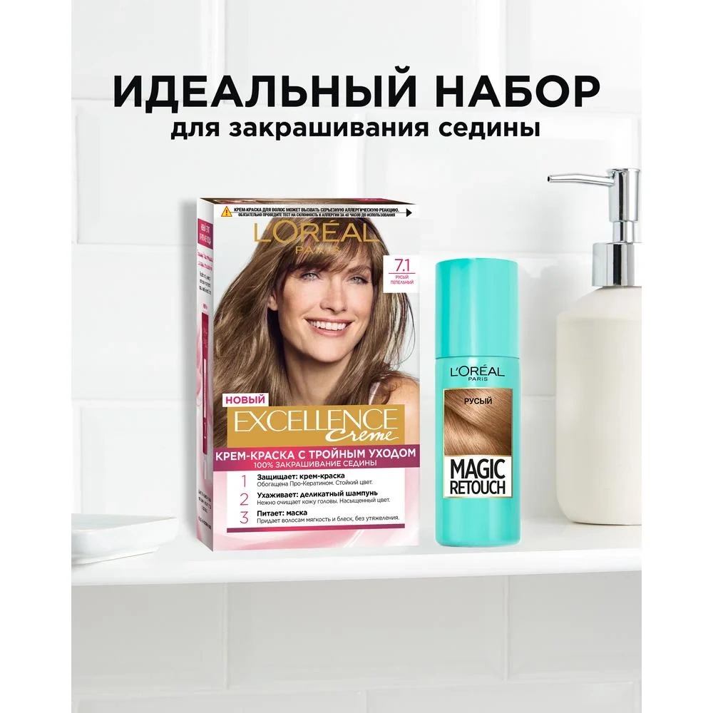 Крем-краска для волос L'Oreal Paris Excellence creme 7.1 Русый пепельный, 258мл