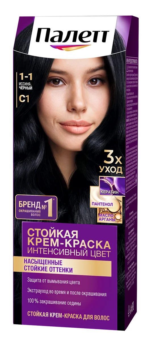 Крем-краска для волос Палетт Интенсивный цвет C1 Иссиня-черный 1-1, 110мл