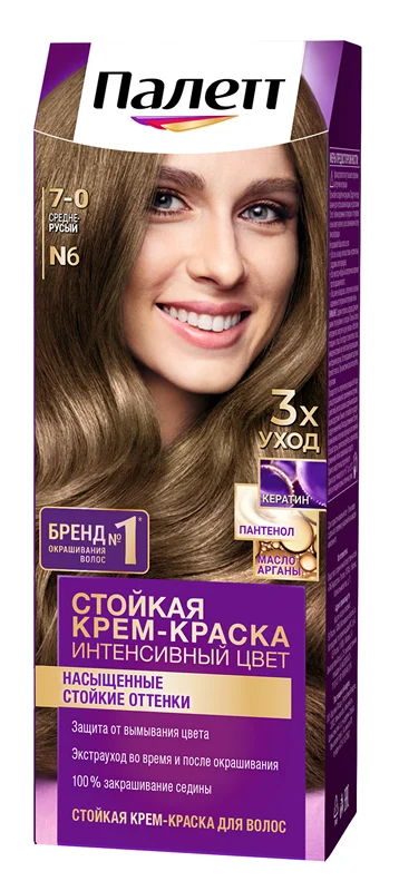 Крем-краска для волос Палетт Интенсивный цвет N6 Средне-русый 7-0, 110мл