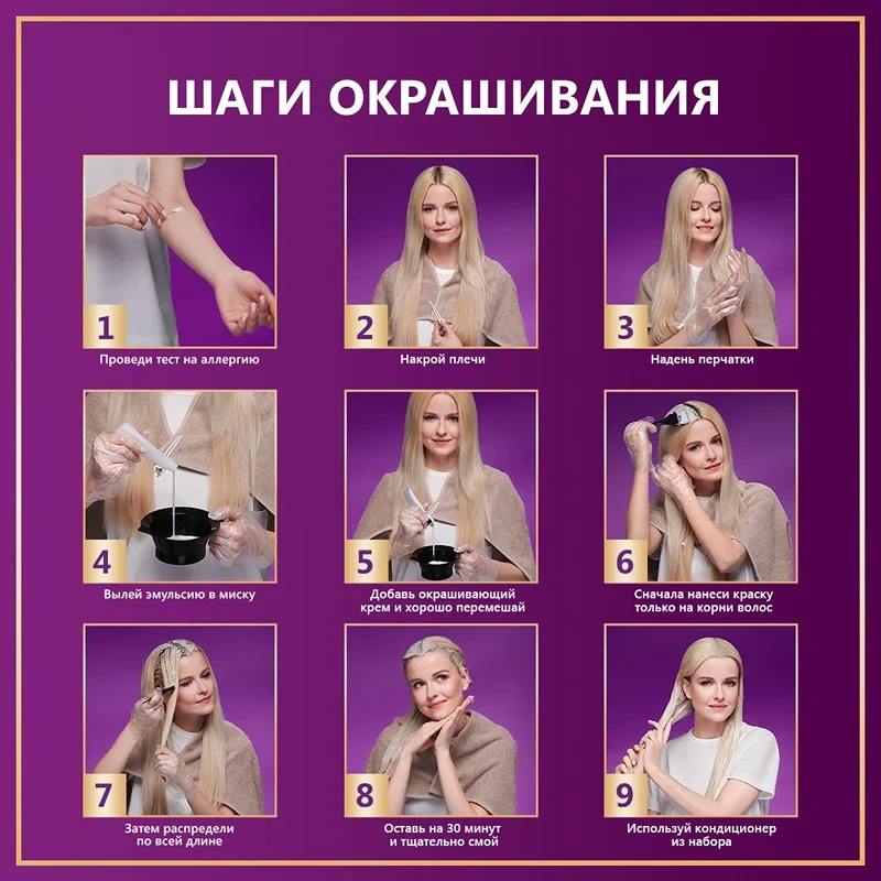 | Комплектация | красящий крем - 1 шт.; проявляющая эмульсия - 1 шт.; бальзам - 1 шт.; перчатки - 1 шт. |