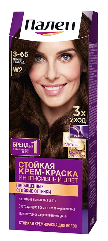 Крем-краска для волос Палетт Защита от вымывания цвета W2 3-65 Темный шоколад, 110мл
