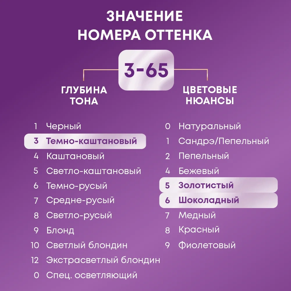 | Комплектация | красящий крем - 1 шт.; проявляющая эмульсия - 1 шт.; бальзам - 1 шт.; перчатки - 1 шт. |