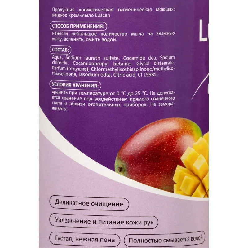 Крем-мыло Luscan бережно очищает и питает кожу рук и тела. Благодаря мягким моющим компонентам крем-мыло нежно и эффективно очищает кожу. Крем-мыло легко пенится и обладает приятным ароматом спелого манго.