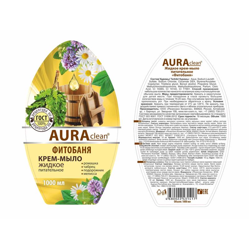 Крем-мыло жидкое AURA CLEAN 1л Фитобаня с дозатором
