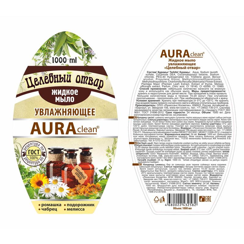 Крем-мыло жидкое AURA CLEAN 1л Целебный отвар с дозатором