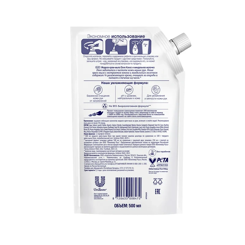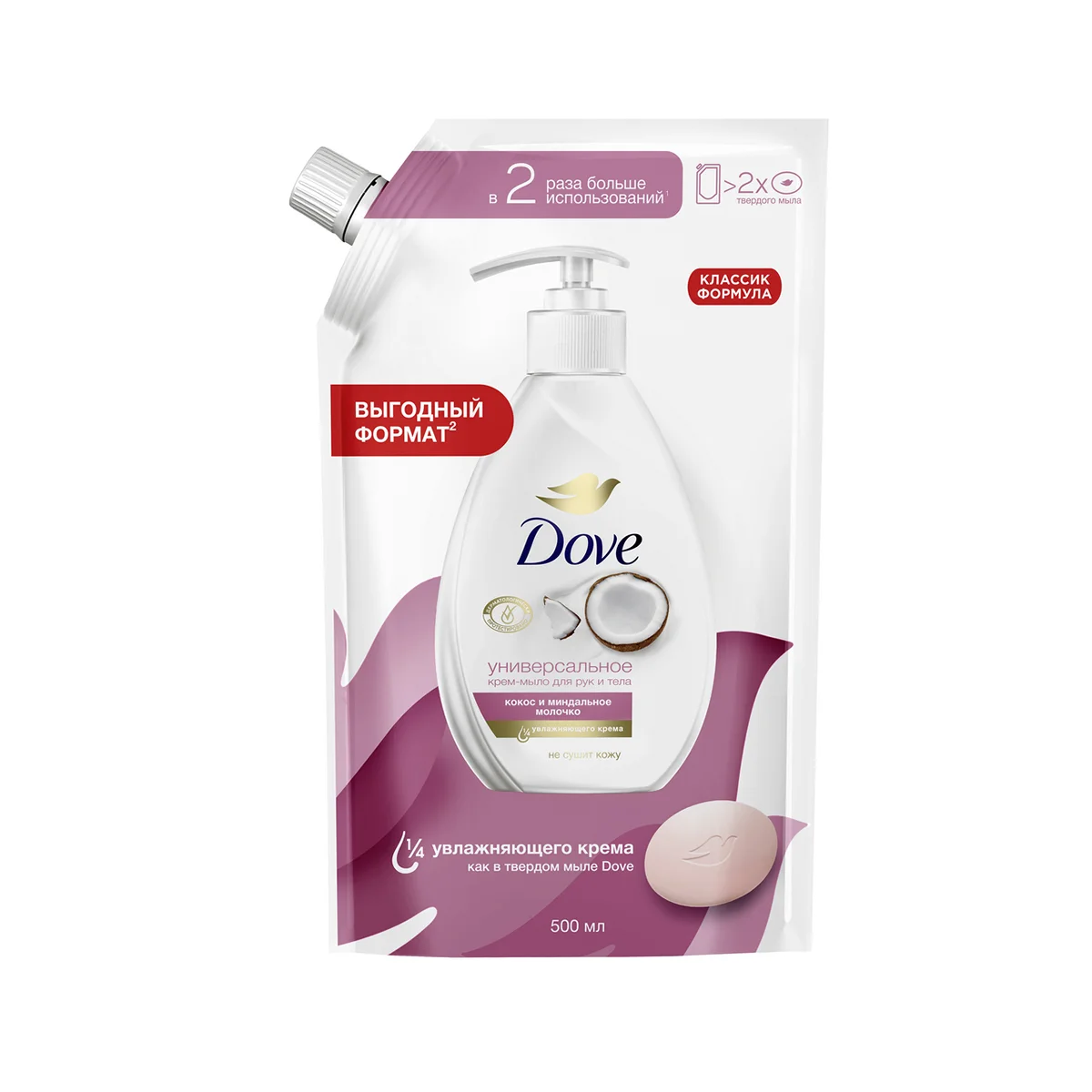 Крем-мыло жидкое Дав с кокосом и миндальным молочком, 500мл