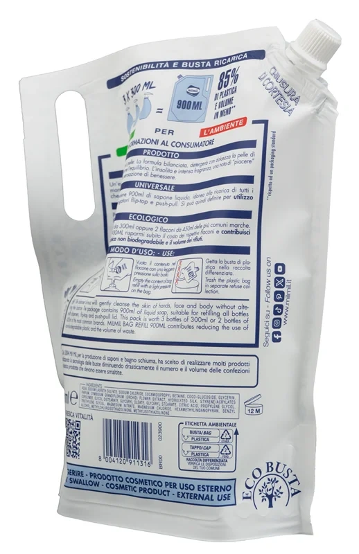Жидкое мыло Milmil в эко-пакете является высокоэффективным антибактериальным средством. Мягко очищает и увлажняет кожу. Убивает бактерии. Подходит для частого применения. Обладает бодрящим ароматом имбиря и зеленого чая.