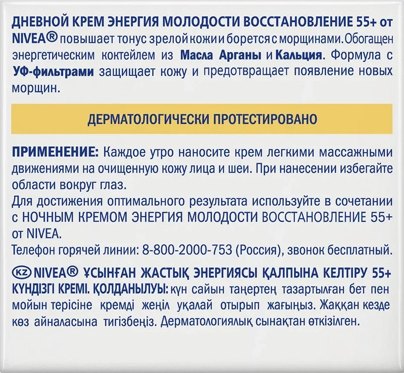 Крем Nivea Энергия молодости 55+ дневной антивозрастной, 50мл