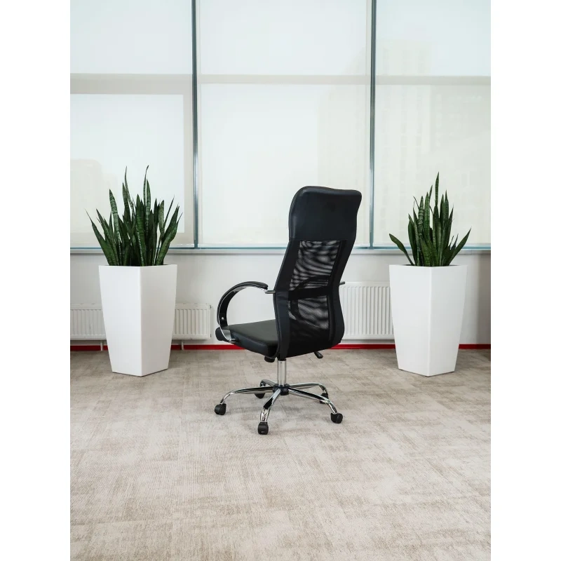 Кресло BN_Dt_EChair-575 TPU, кожзам черный, сетка черная