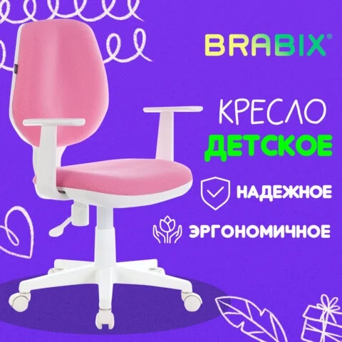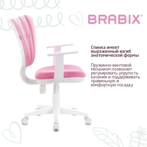 Кресло BRABIX 'Fancy MG-201W', с подлокотниками, пластик белый, розовое, 532409, MG-201W_532409