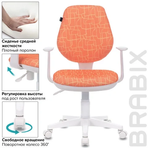 Кресло BRABIX 'Fancy MG-201W', с подлокотниками, пластик белый, с рисунком 'Giraffe', 532407, MG-201