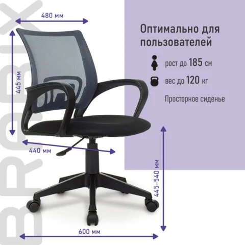Кресло офисное Brabix Fly MG-396 сетка, черая-черная, крестовина пластик