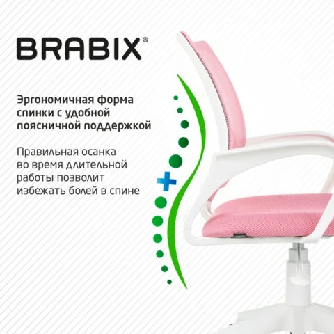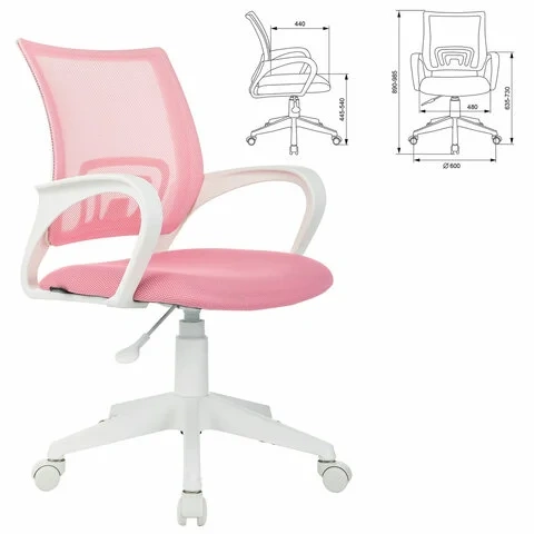 Кресло BRABIX 'Fly MG-396W', с подлокотниками, пластик белый, сетка, розовое, 533008