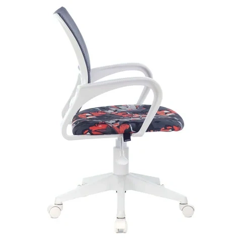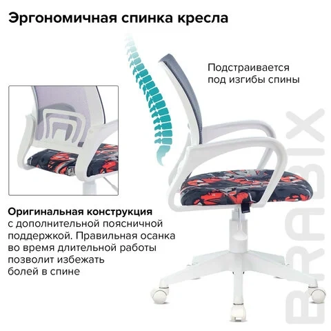 Кресло BRABIX 'Fly MG-396W', с подлокотниками, пластик белый, сетка, серое с рисунком 'Graffity', 53