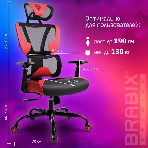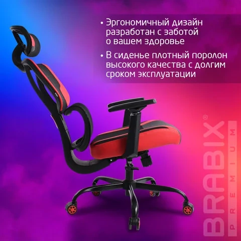 Кресло BRABIX PREMIUM 'Toxin GM-520', синхромеханизм, экокожа/сетка/ткань, черное/красное, 532950