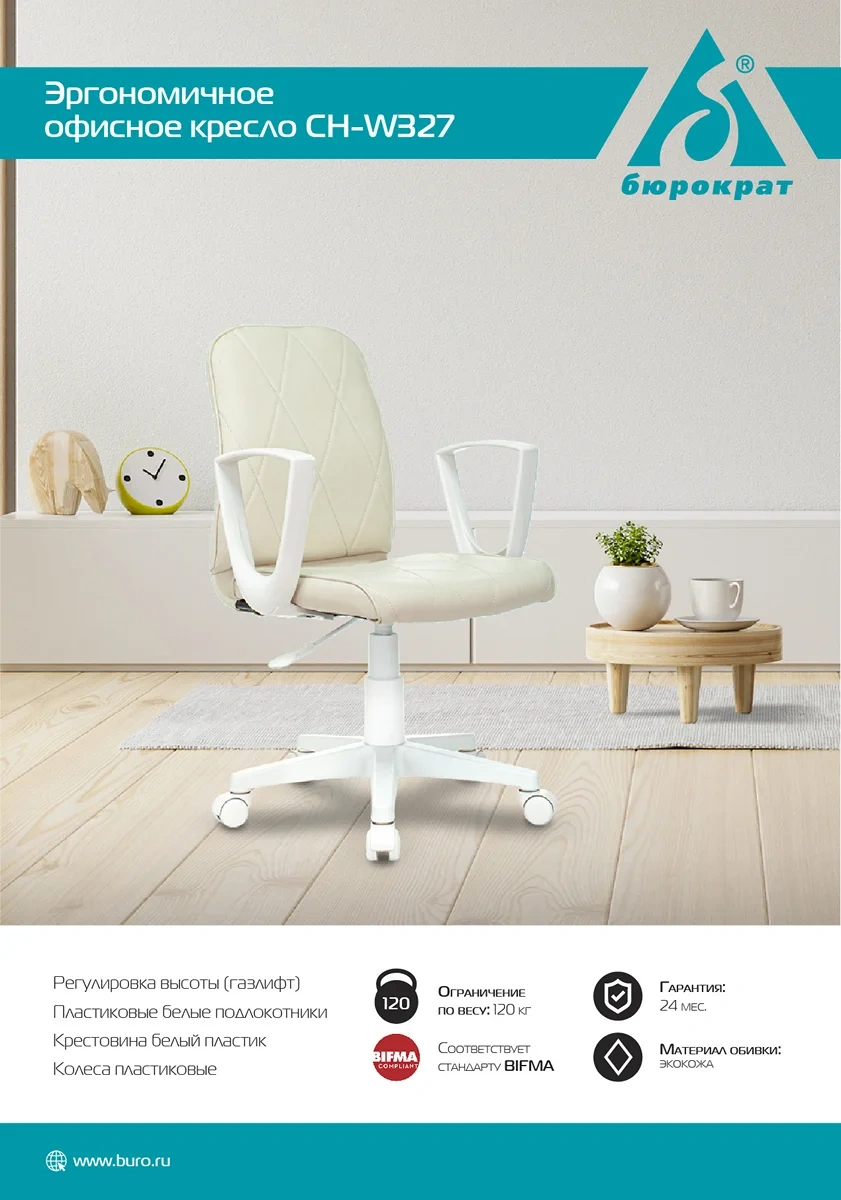 Кресло Бюрократ CH-W327 слоновая кость OR-10 эко.кожа крестов. пластик пластик белый