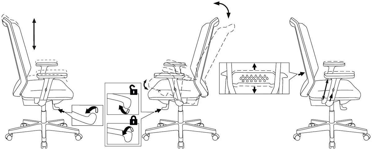 | Регулировка | высоты (газлифт), высоты подголовника, положения подлокотников, поясничной области |