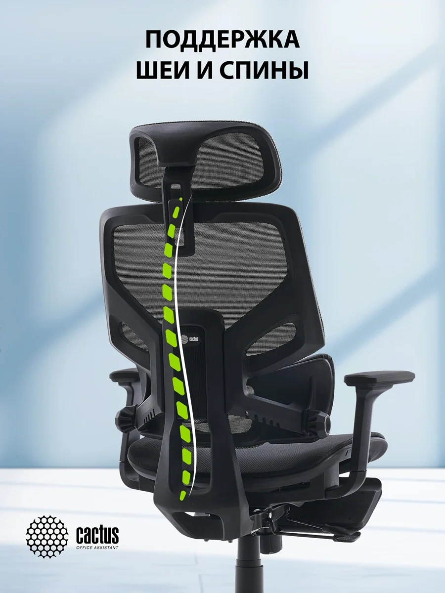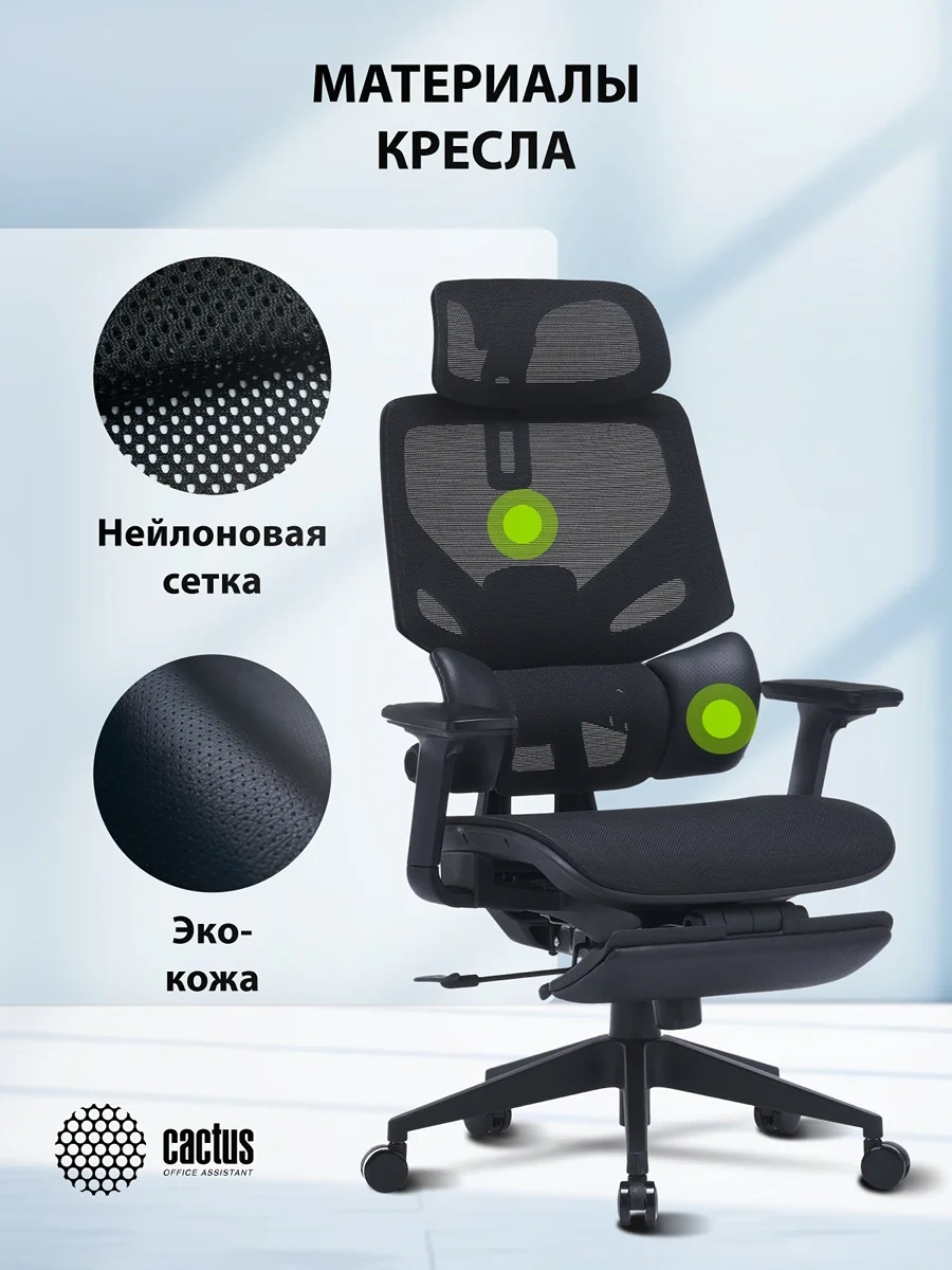 Кресло Cactus CS-CHR-MC01-BK черный сет./эко.кожа с подголов. крестов. пластик