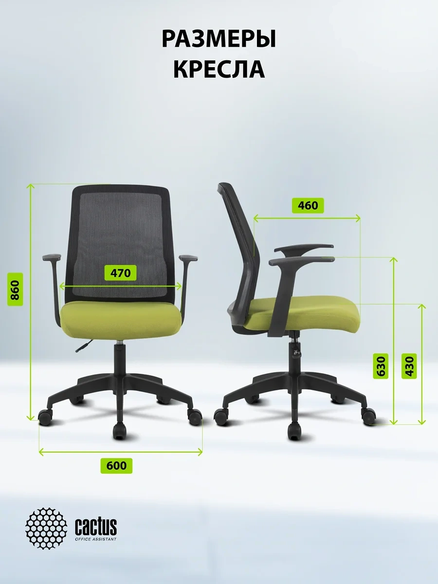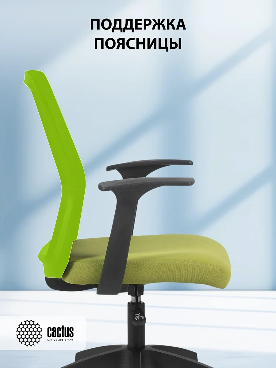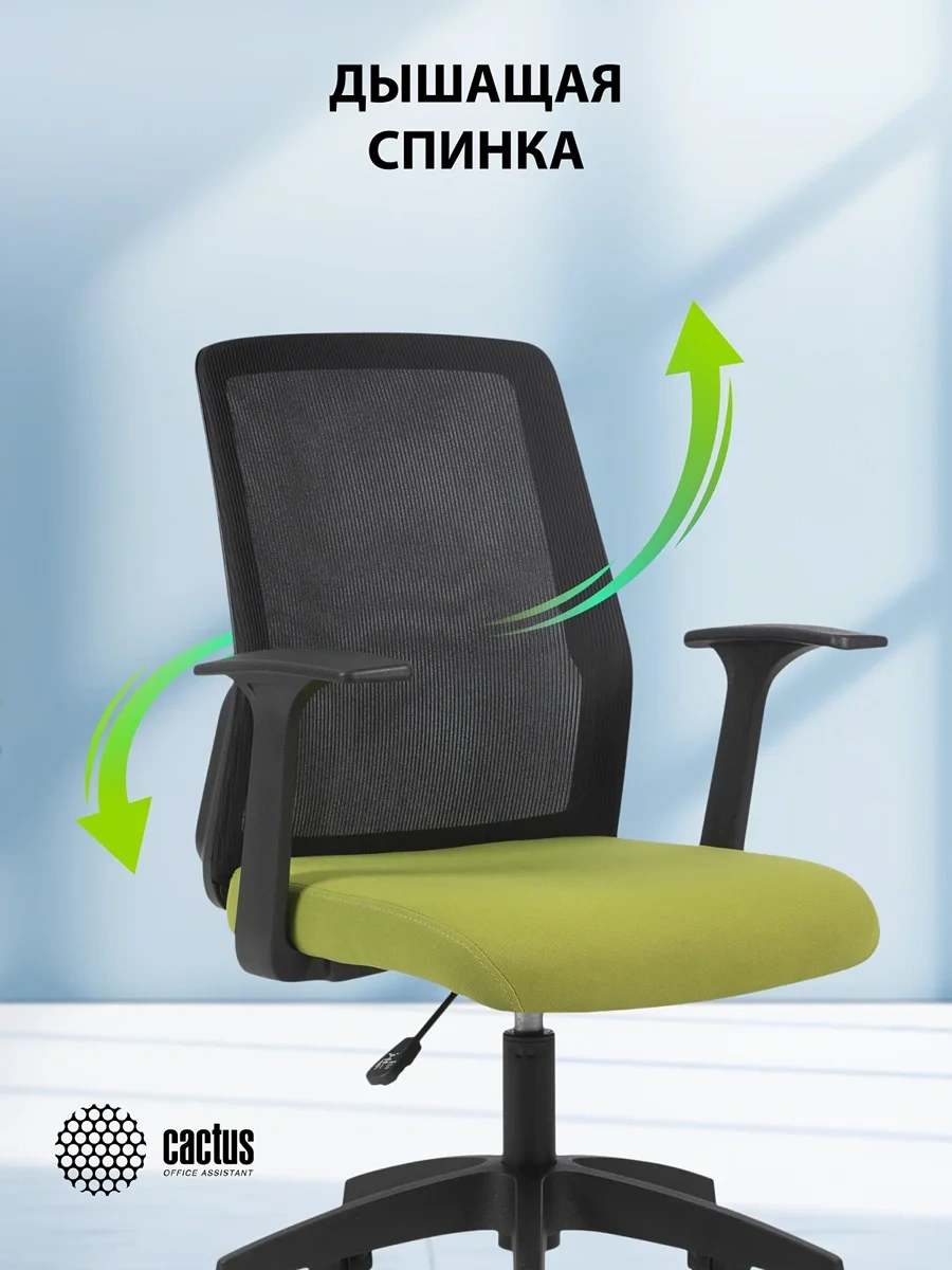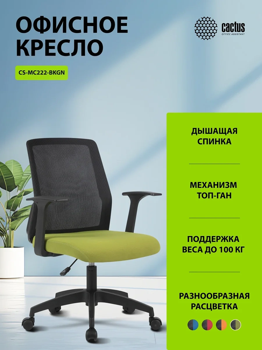 Кресло Cactus CS-MC222-BKGN черный сиденье салатовый сетка/ткань низк.спин. крестов. пластик пластик