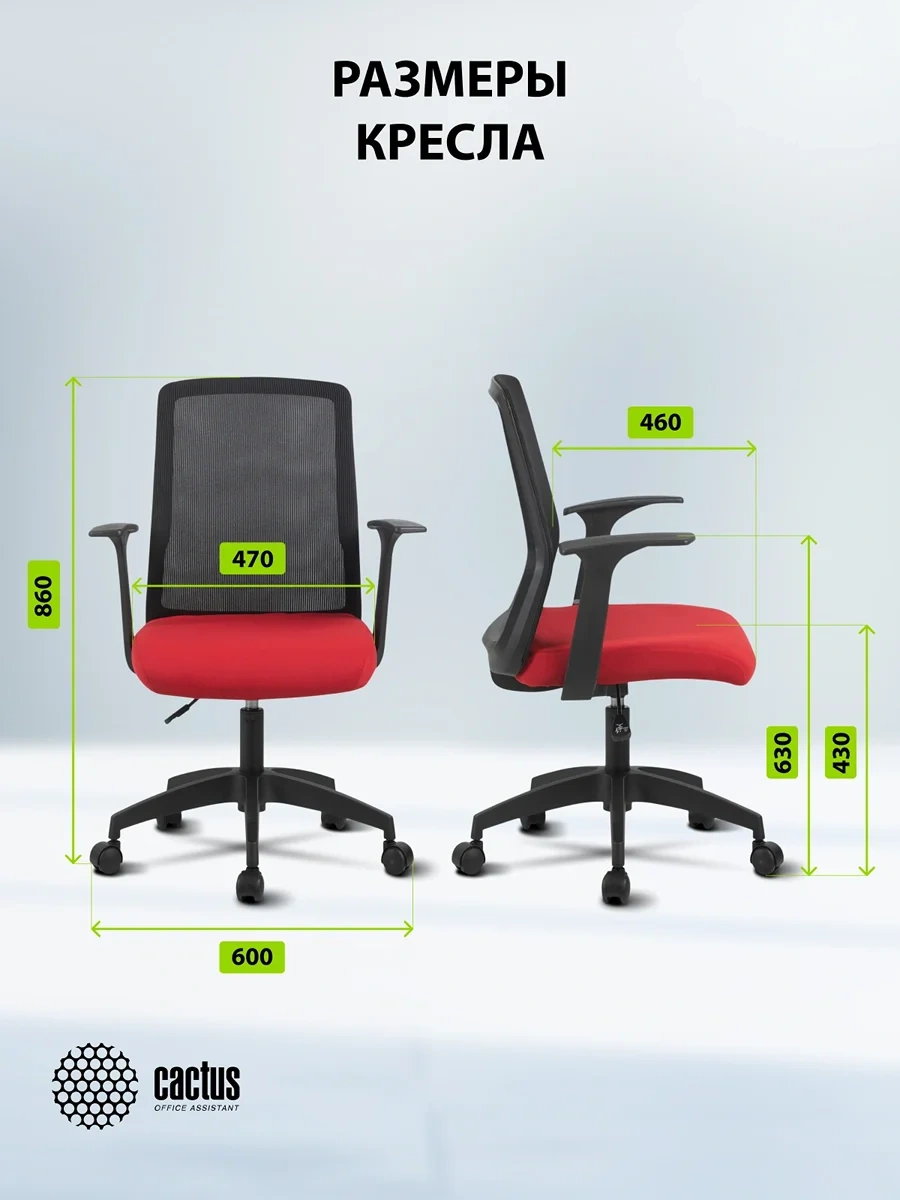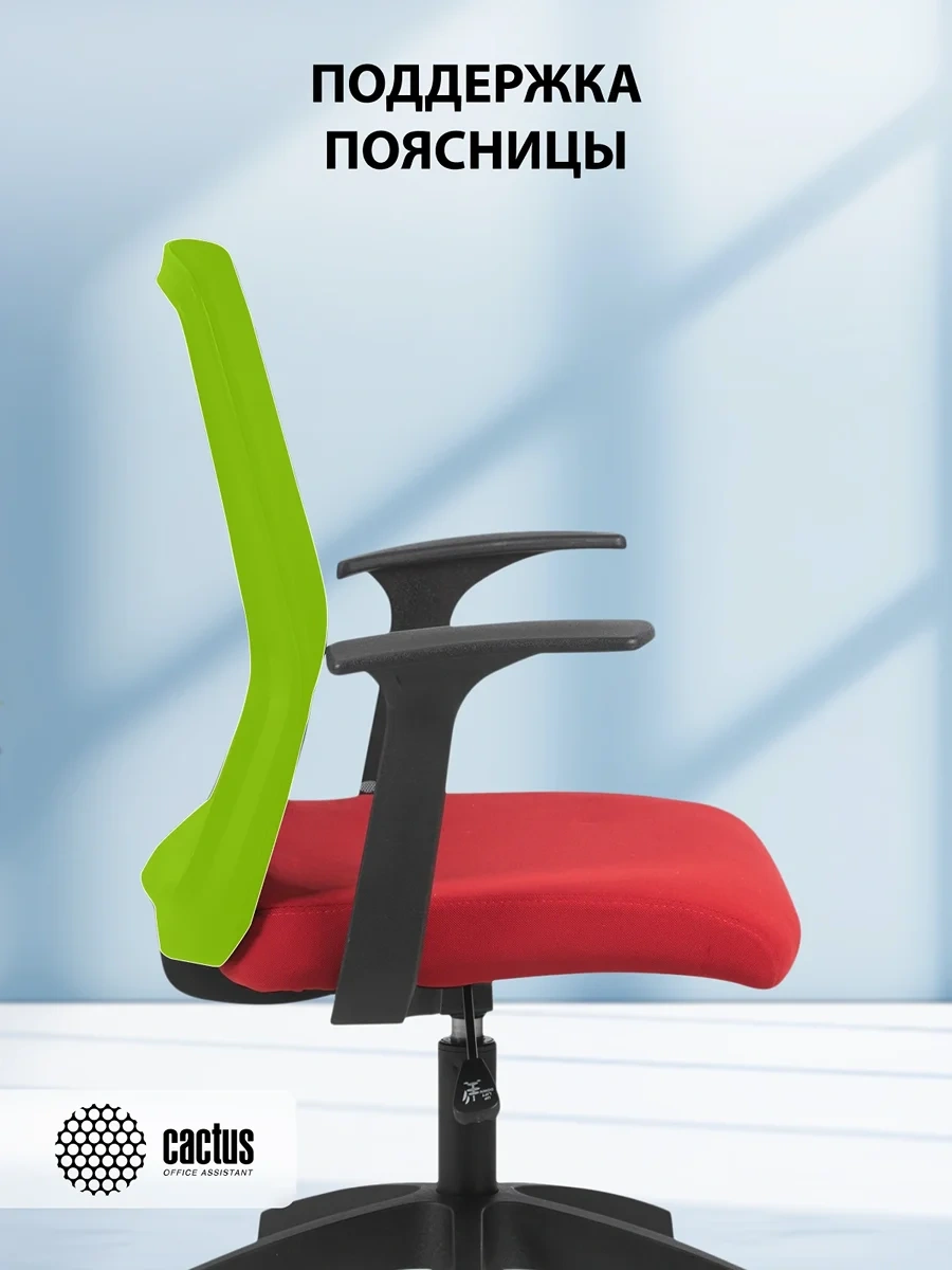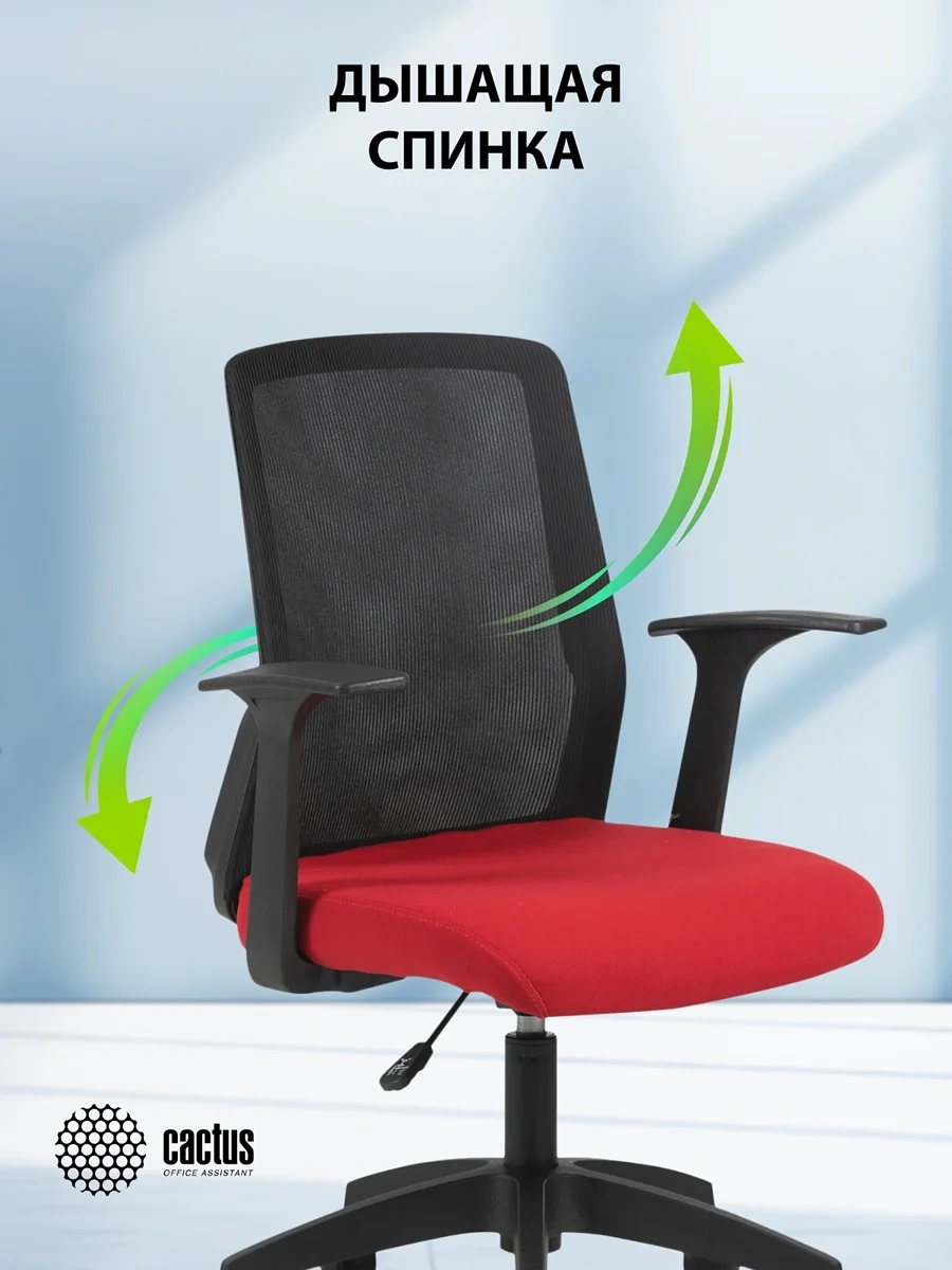 Кресло Cactus CS-MC222-BKRD черный сиденье темно-красный сетка/ткань низк.спин. крестов. пластик пла