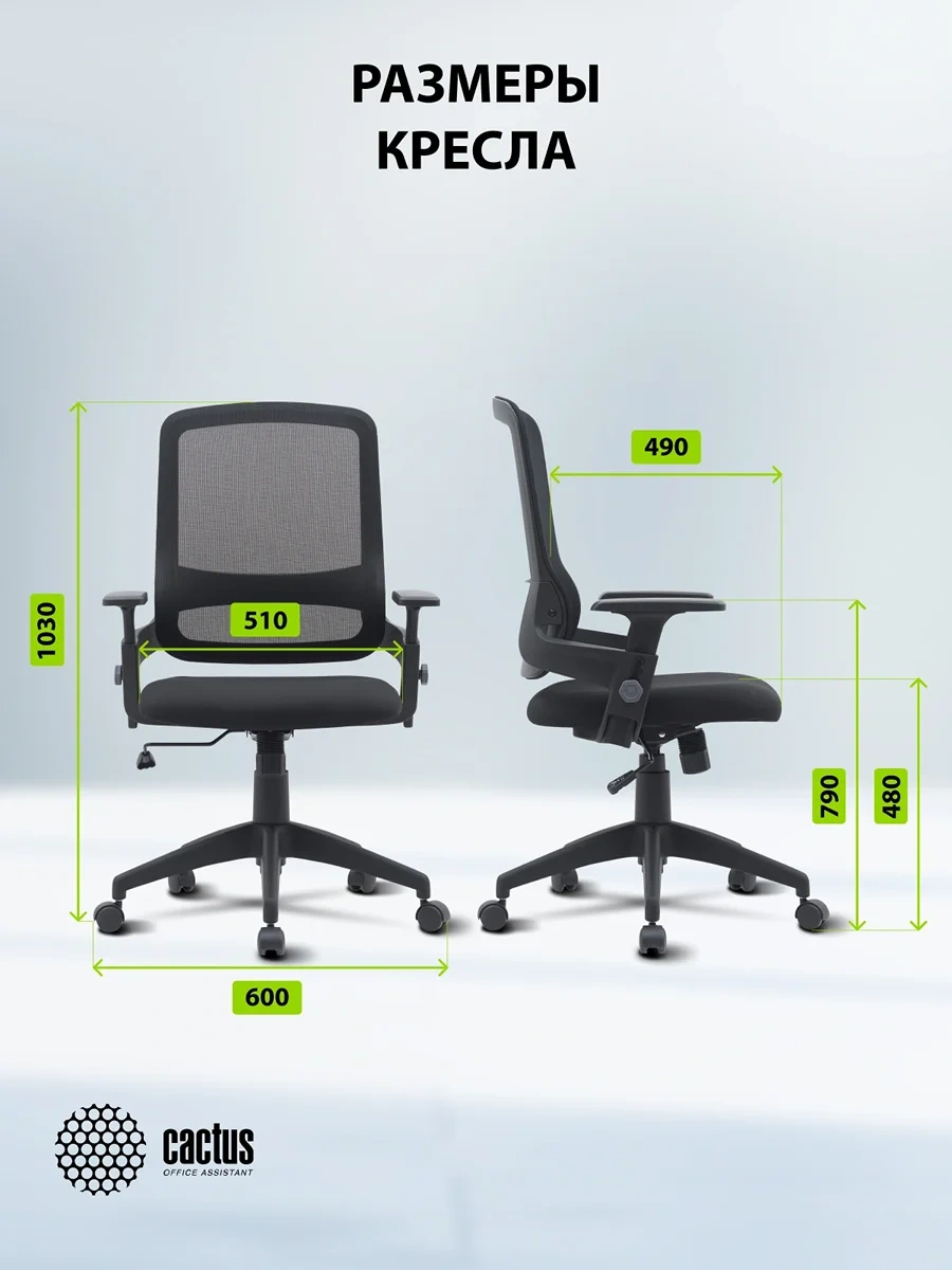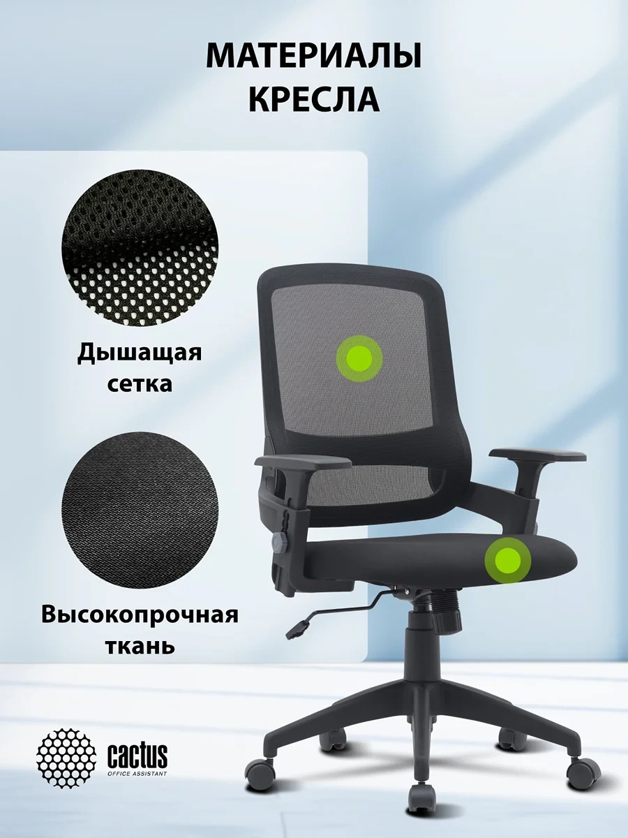 Кресло Cactus CS-MC313-BK черный сетка/ткань низк.спин. крестов. пластик пластик черный