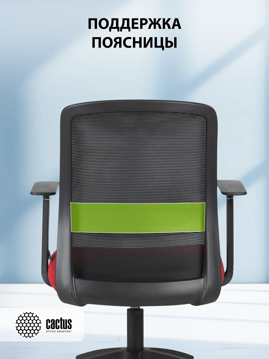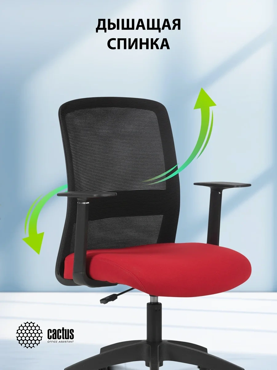 Кресло Cactus CS-MC333-BKRD черный сиденье темно-красный сетка/ткань низк.спин. крестов. пластик пла