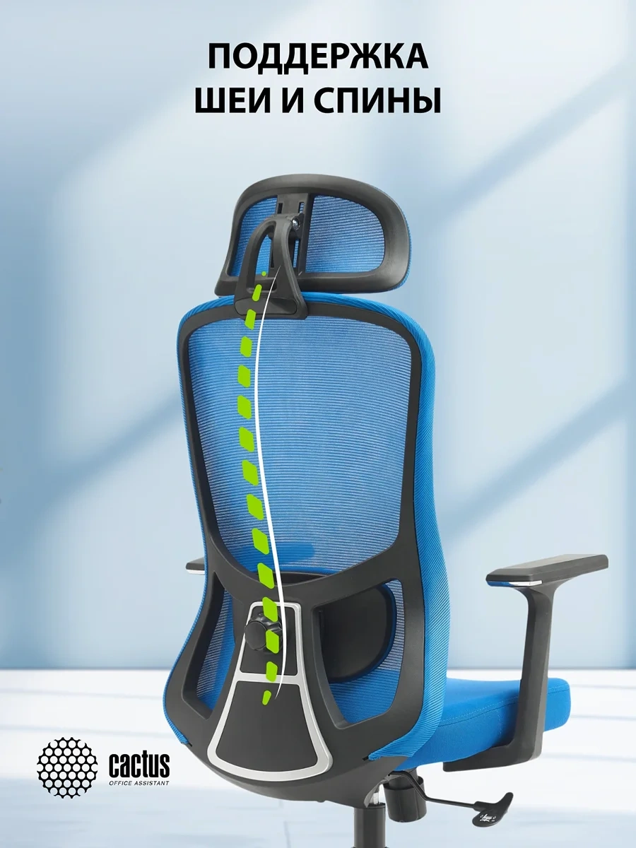Кресло Cactus CS-MC515-BL темно-синий сиденье темно-синий сетка/ткань с подголов. крестов. пластик п