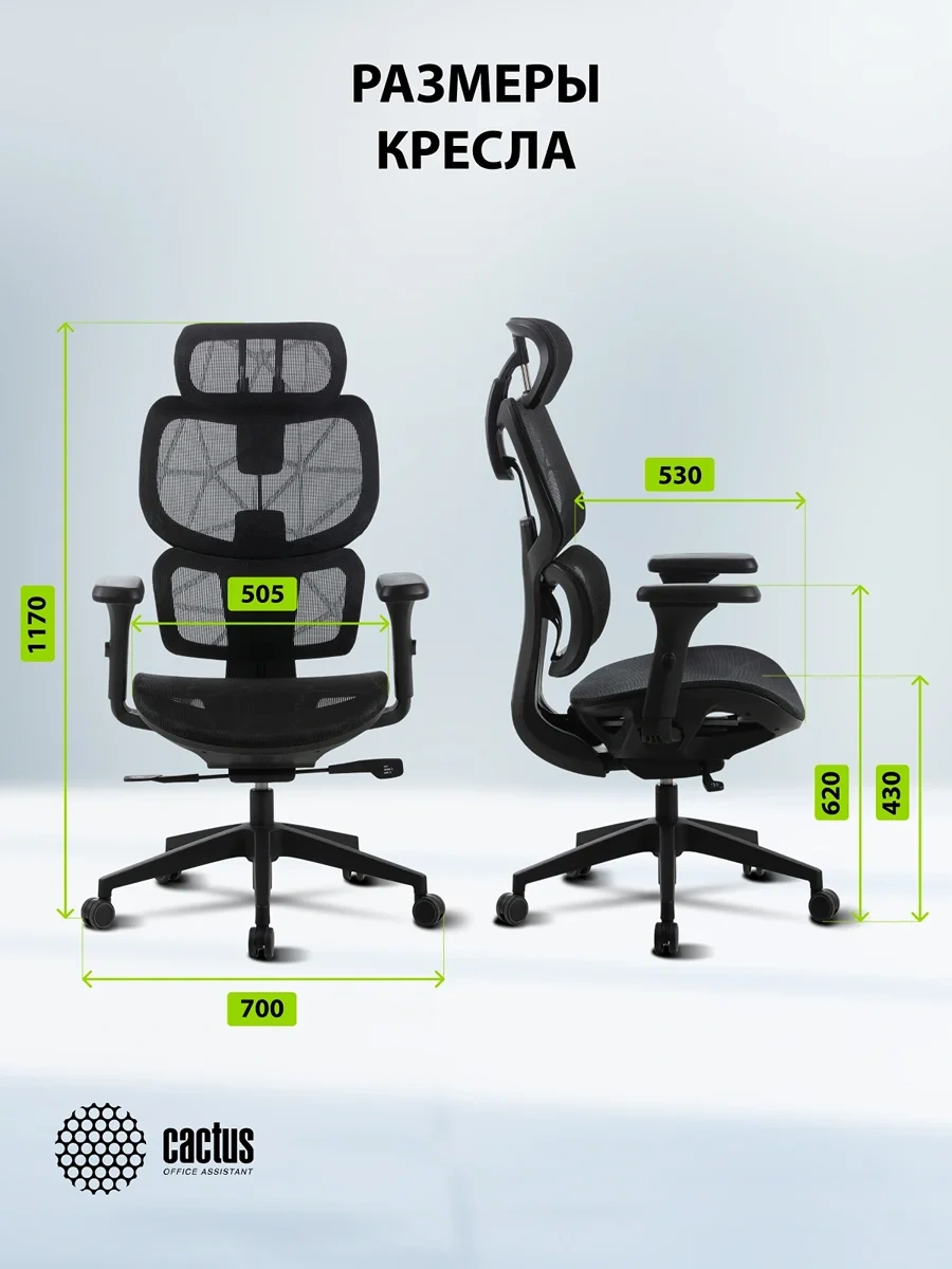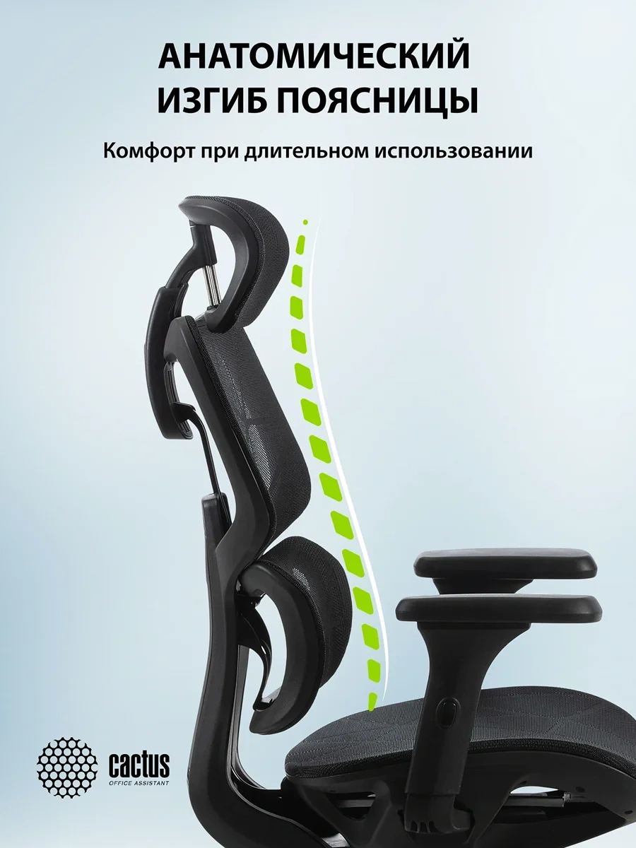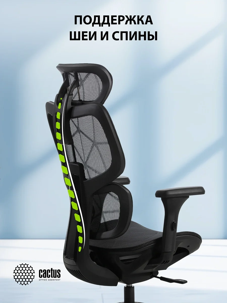 Кресло Cactus CS-MC555-BK черный сетка с подголов. крестов. пластик пластик черный