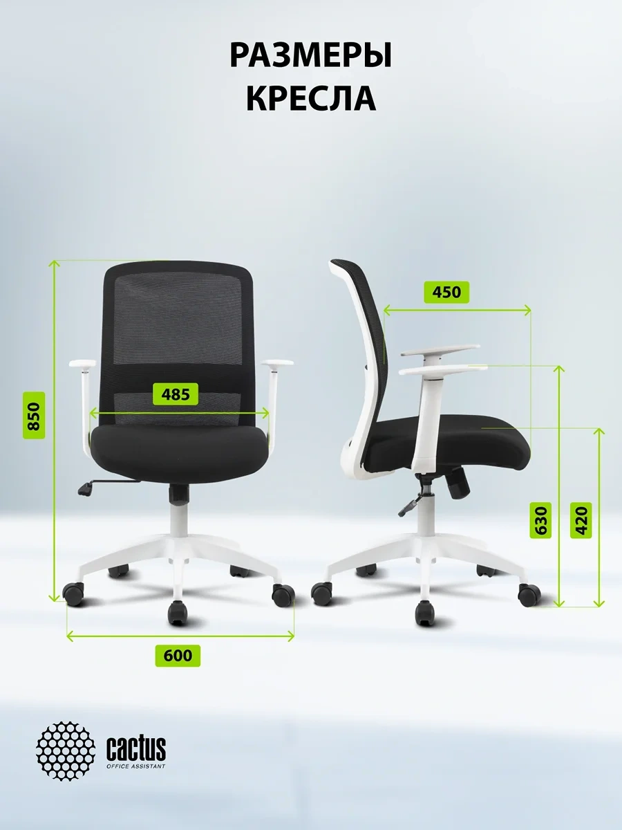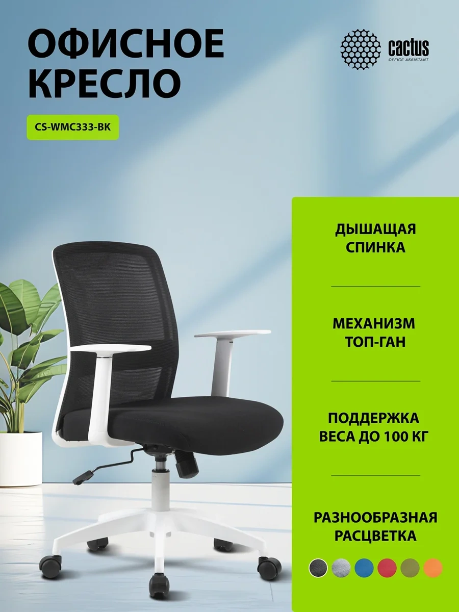 Кресло Cactus CS-WMC333-BK черный сиденье черный сетка/ткань низк.спин. крестов. пластик пластик бел