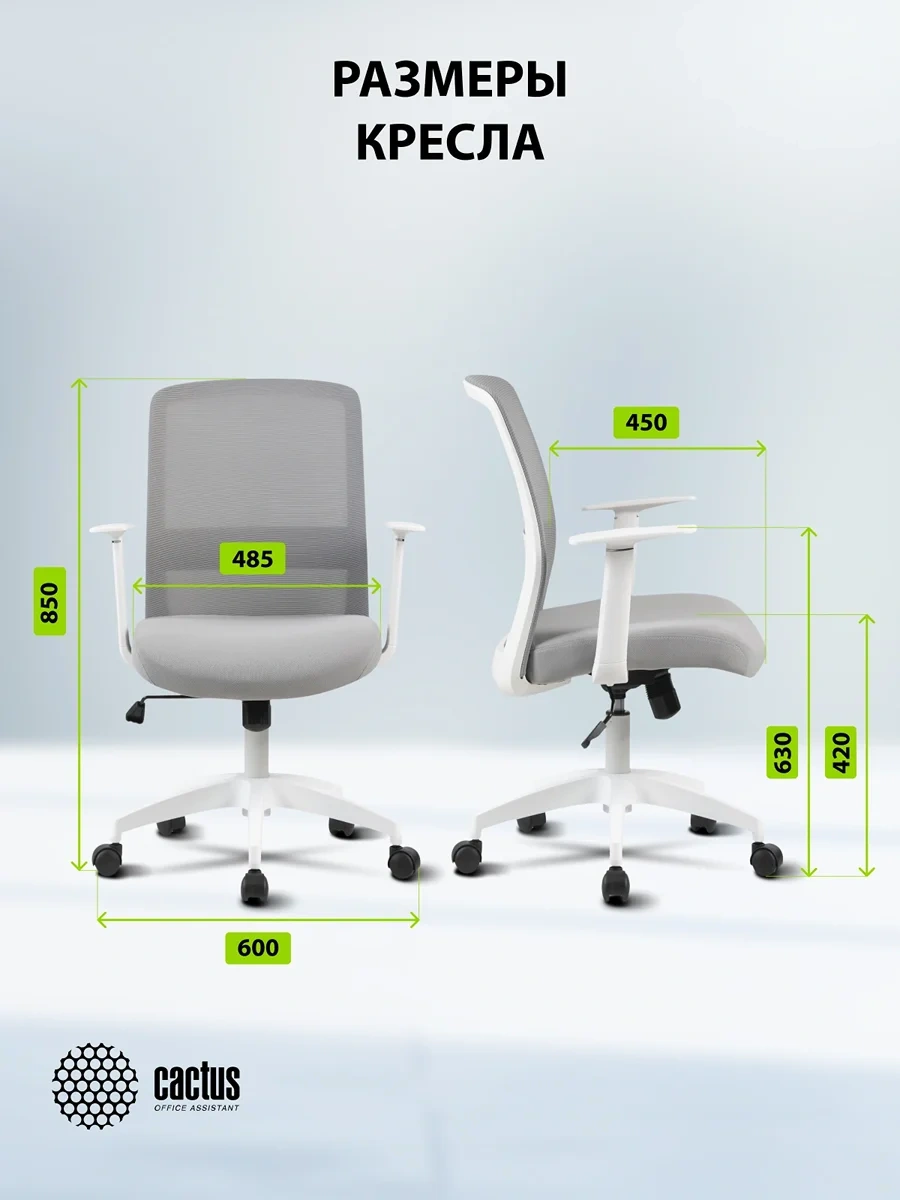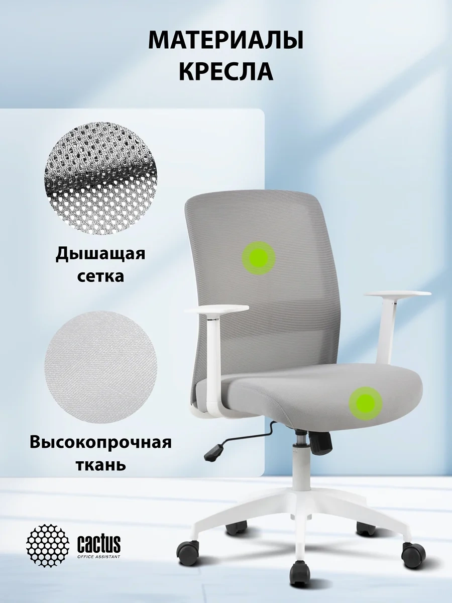Кресло Cactus CS-WMC333-GY серый сиденье серый сетка/ткань низк.спин. крестов. пластик пластик белый