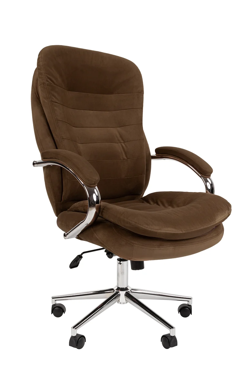Элегантное кресло подойдет для домашнего кабинета или кабинета руководителя. Универсальный дизайн подходит для большинства интерьеров. Округлые формы, эффектный хромированный металл и мягкая обивка из велюра придают креслу статусный и эффектный внешний вид. Эргономичная форма и дополнительные подушки сиденья и спинки обеспечивают удобную посадку. Кресло оснащено механизмом качания с возможностью фиксации в любом положении, что позволяет настроить кресло в нужный режим для работы или отдыха.