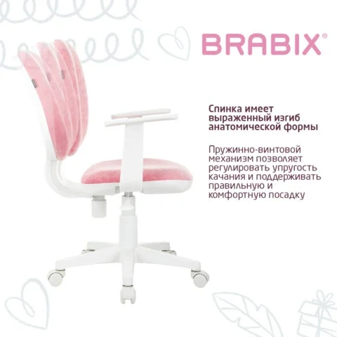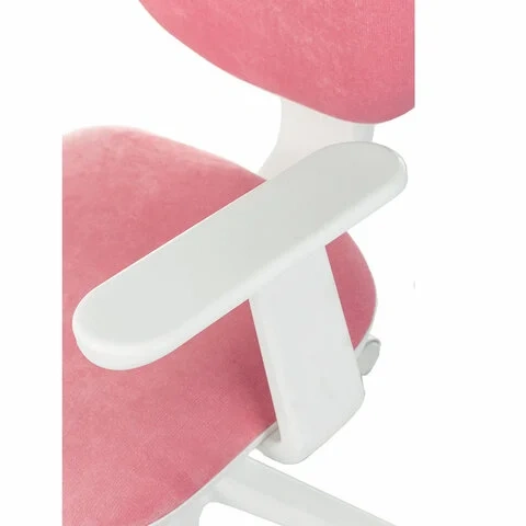 Кресло детское BRABIX 'Fancy MG-201W', с подлокотниками, пластик белый, ткань вельветовая, розовое,