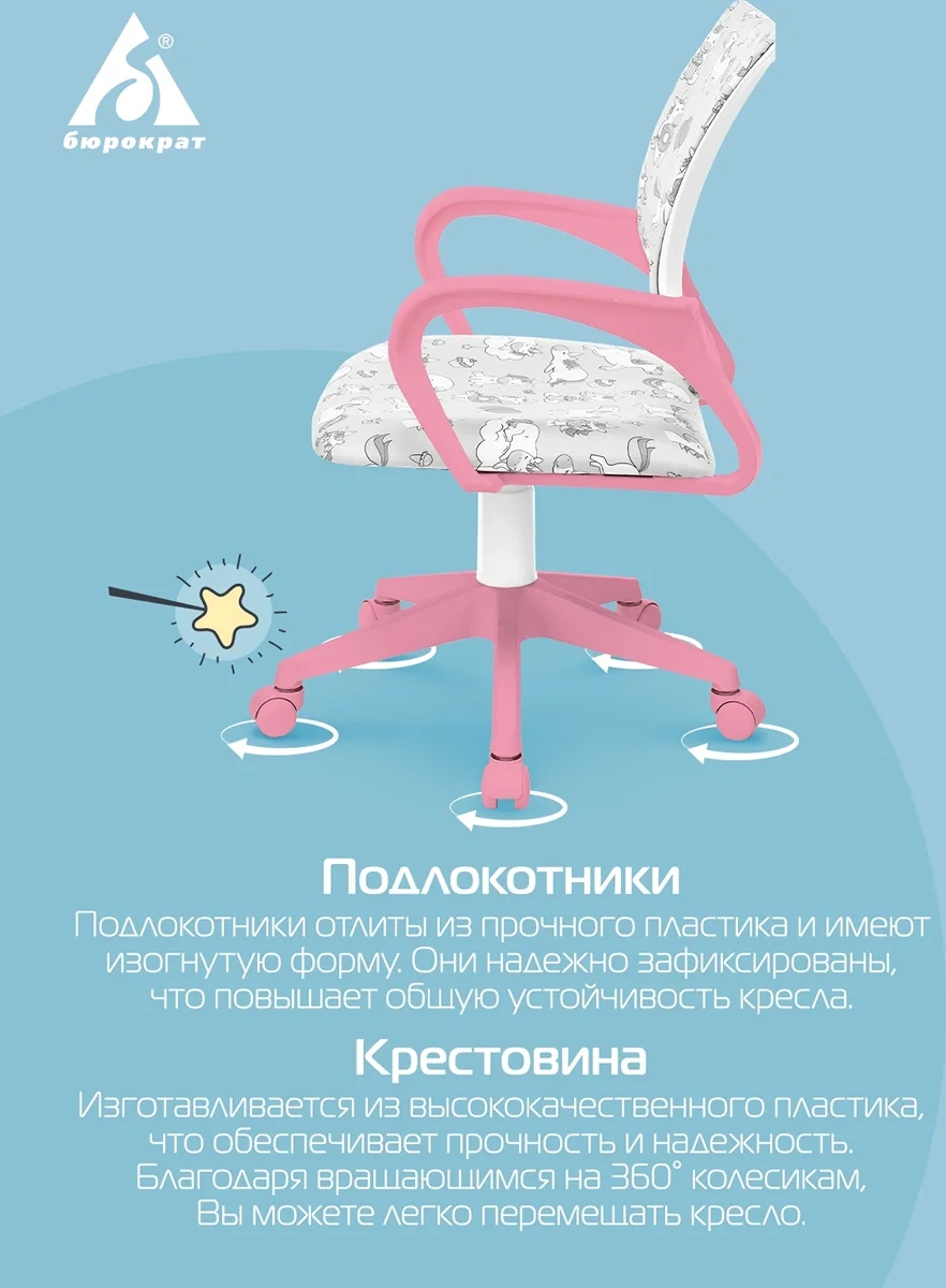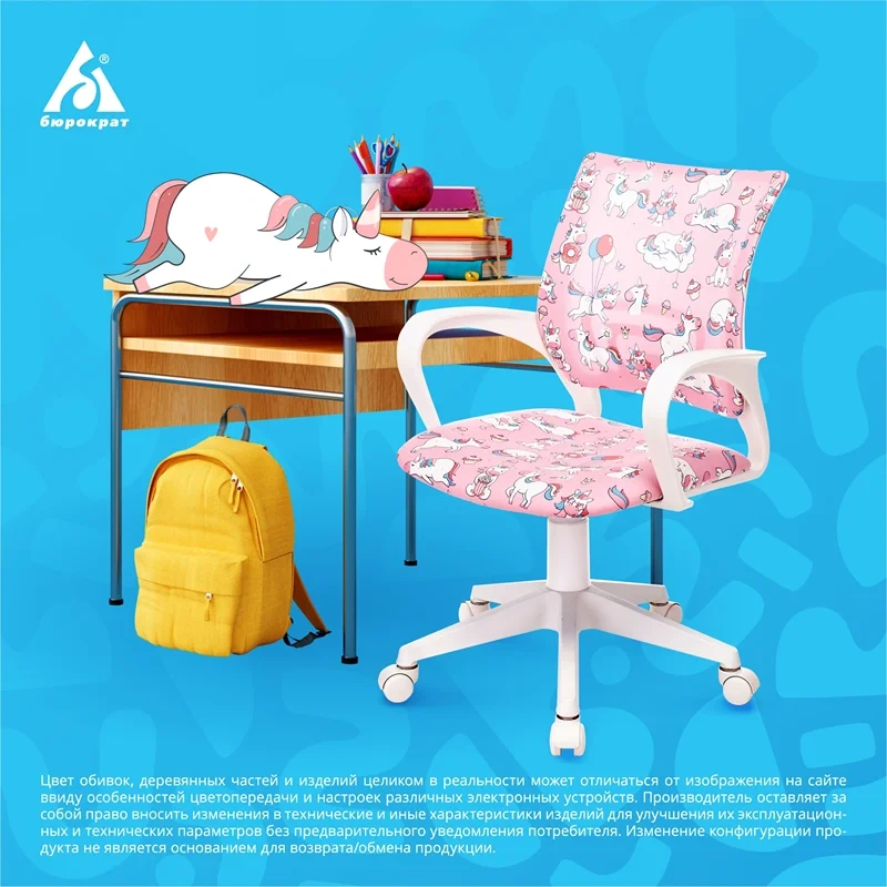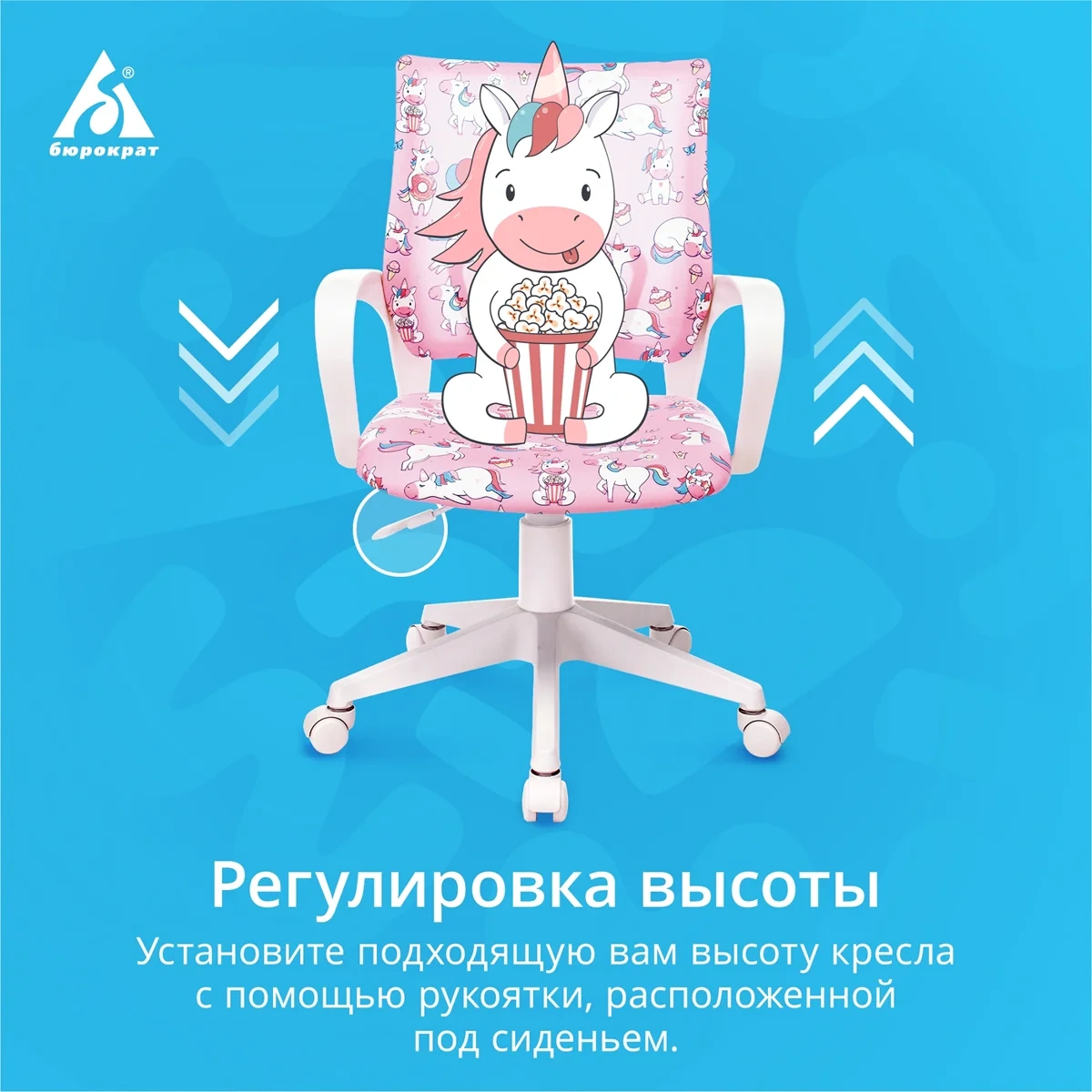 Кресло детское Бюрократ BUROKIDS 1 W розовый единороги крестов. пластик пластик белый