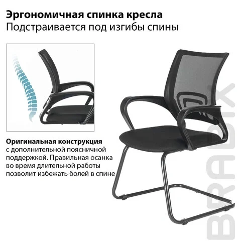 Стул посетителя Brabix Fly CF-100 ткань, черная, сетка черная, на полозьях
