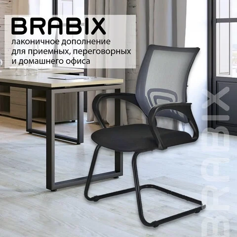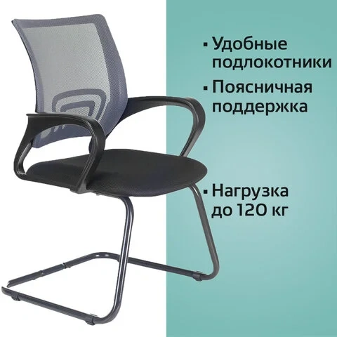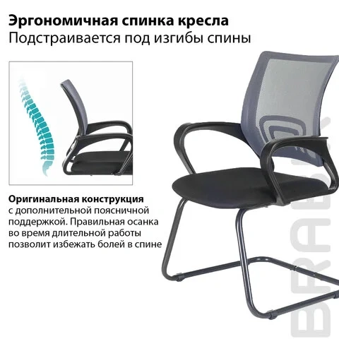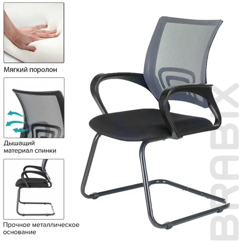 Стул посетителя Brabix Fly CF-100 ткань, черная, сетка серая, на полозьях