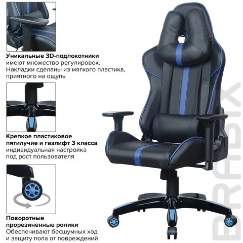 Кресло геймера Brabix GT Carbon GM-120 экокожа, черная-синяя, крестовина пластик