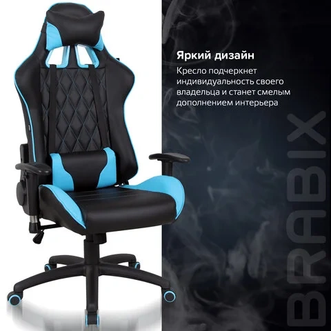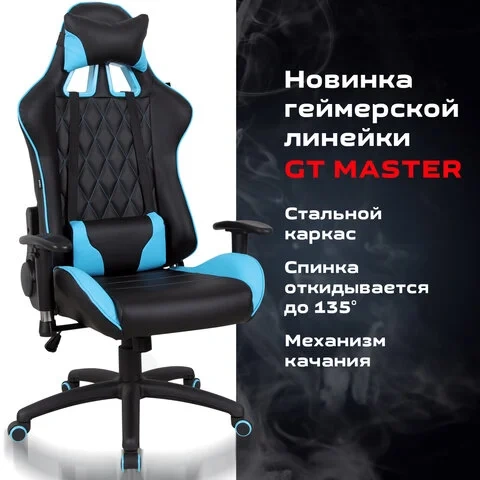 Кресло геймера Brabix GT Master GM-110 экокожа, черная-голубая, крестовина пластик