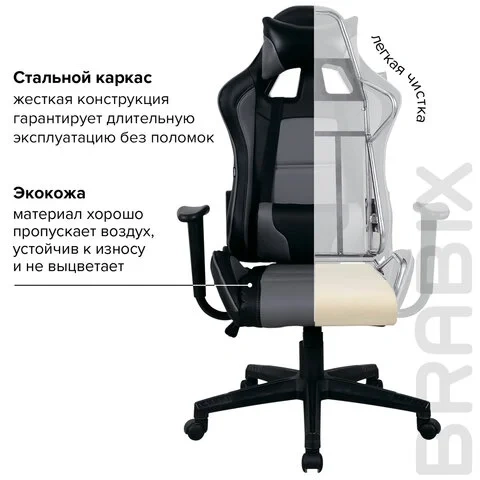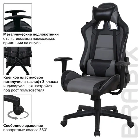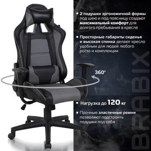 Кресло геймера Brabix GT Master GM-110 экокожа, черная-серая, крестовина пластик
