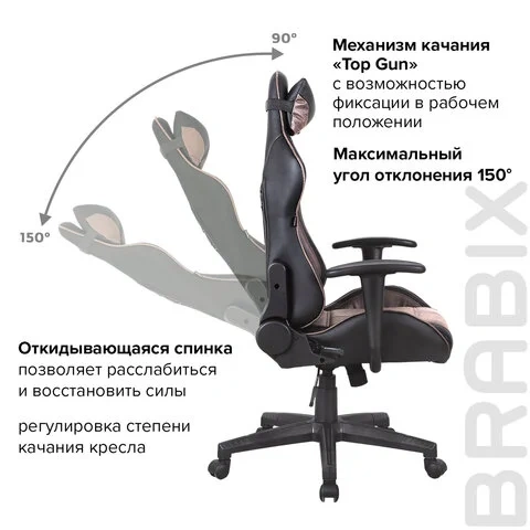 Модель оснащена механизмом качания «топ-ган» с регулировкой под вес пользователя и возможностью фиксации в рабочем положении.