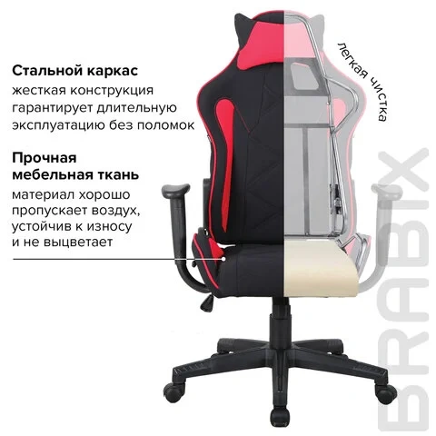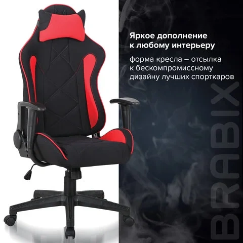Кресло геймера Brabix GT Racer GM-101 ткань, черно-красная, подушка, крестовина пластик