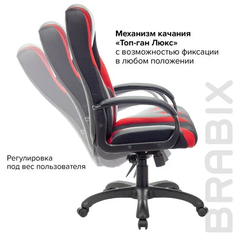 Кресло геймера Brabix Rapid GM-102 экокожа-ткань, черная-красная, крестовина пластик