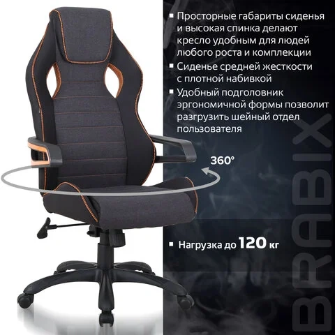 Кресло геймера Brabix Techno Pro GM-003 ткань, черная-серая, крестовина пластик