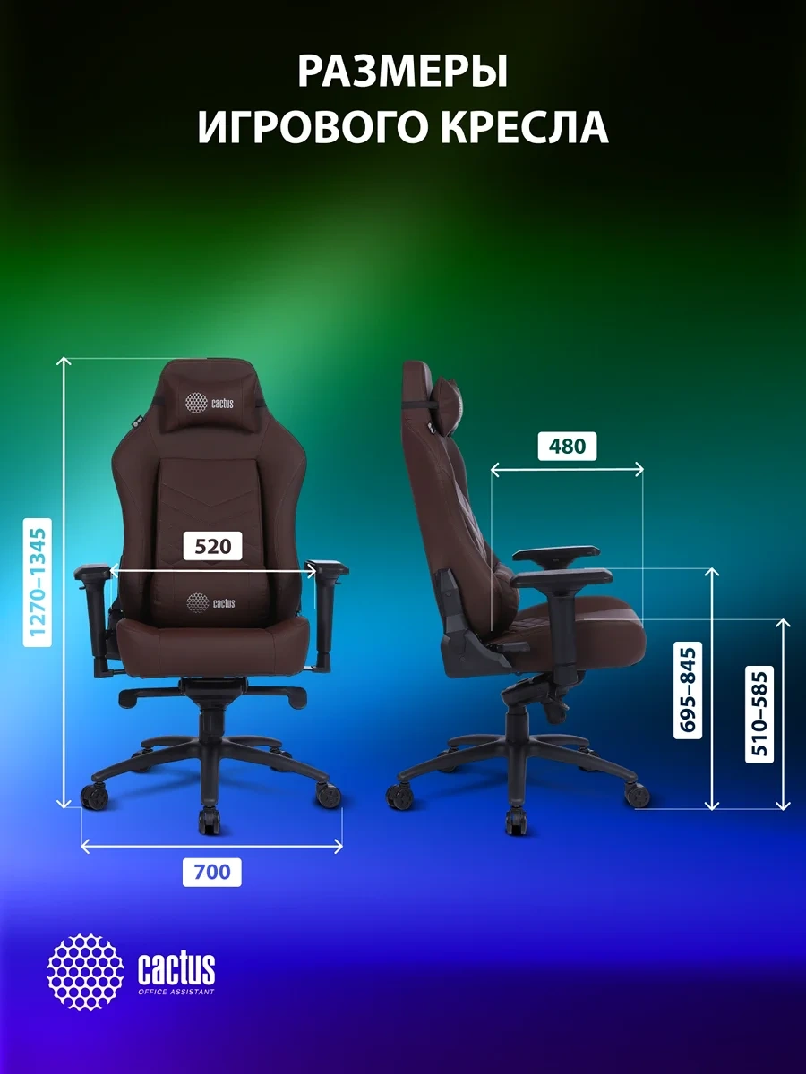Кресло геймера Cactus CS-CHR-0112BR экокожа, коричневая, крестовина хром, подголовник